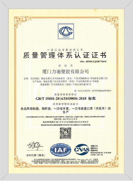 廈門力迪塑膠有限公司,成立于2005年是一家產(chǎn)業(yè)鏈完整、已有專業(yè)研發(fā)設(shè)計(jì)團(tuán)隊(duì)、生產(chǎn)、銷售及品牌運(yùn)營(yíng)為一體的現(xiàn)代化企業(yè)。公司主營(yíng):一次性餐飲耗品與一次性醫(yī)療耗品;具體產(chǎn)品有:一次性PE手套、保鮮袋、保鮮膜、環(huán)保垃圾袋、纏繞膜、PS航空杯、紙杯、錫紙以及醫(yī)用防護(hù)口罩,醫(yī)用外科口罩,醫(yī)用創(chuàng)可貼,醫(yī)用敷貼,醫(yī)用手套等一次性耗品。車間按照國(guó)家“QS標(biāo)準(zhǔn)化進(jìn)行規(guī)劃設(shè)計(jì),運(yùn)營(yíng)面積達(dá)35000+平方米,擁有專業(yè)生產(chǎn)線400余條,月產(chǎn)量3900余噸。